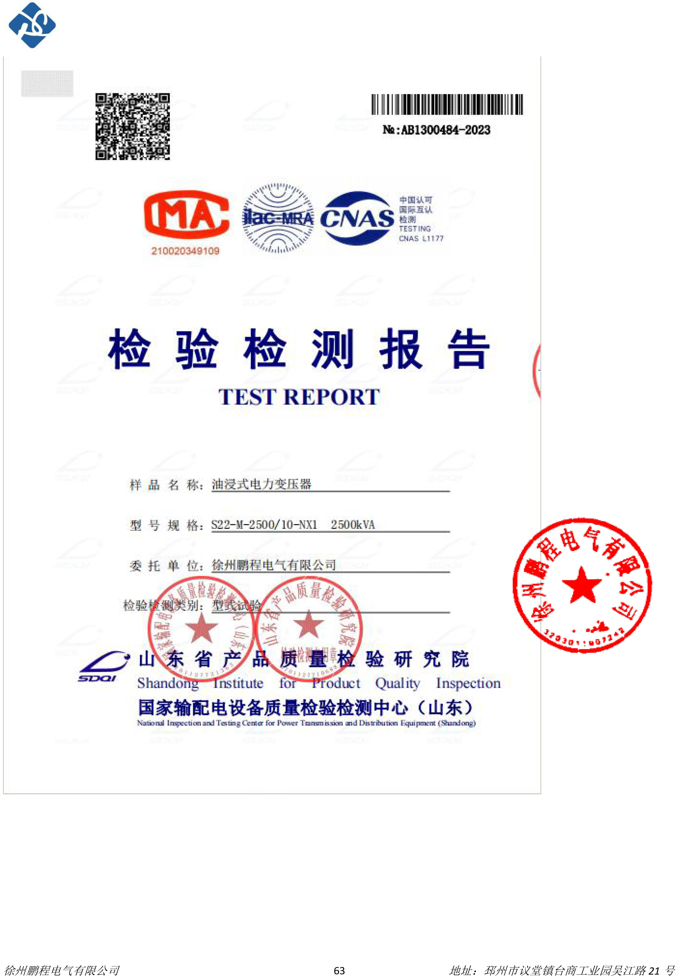 徐州鹏程电气有限公司取得S22-2500/10/0.4变压器一级能效资质