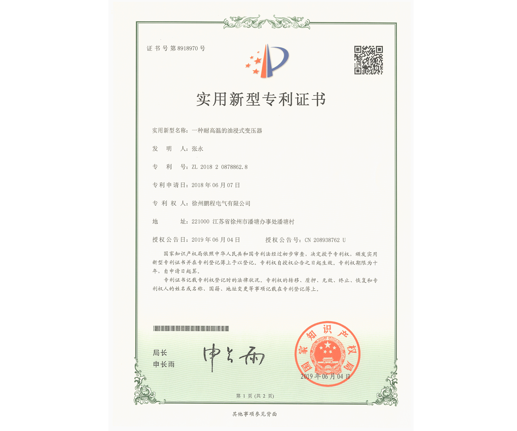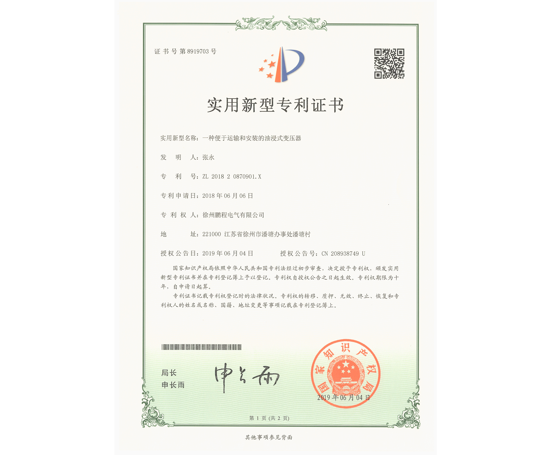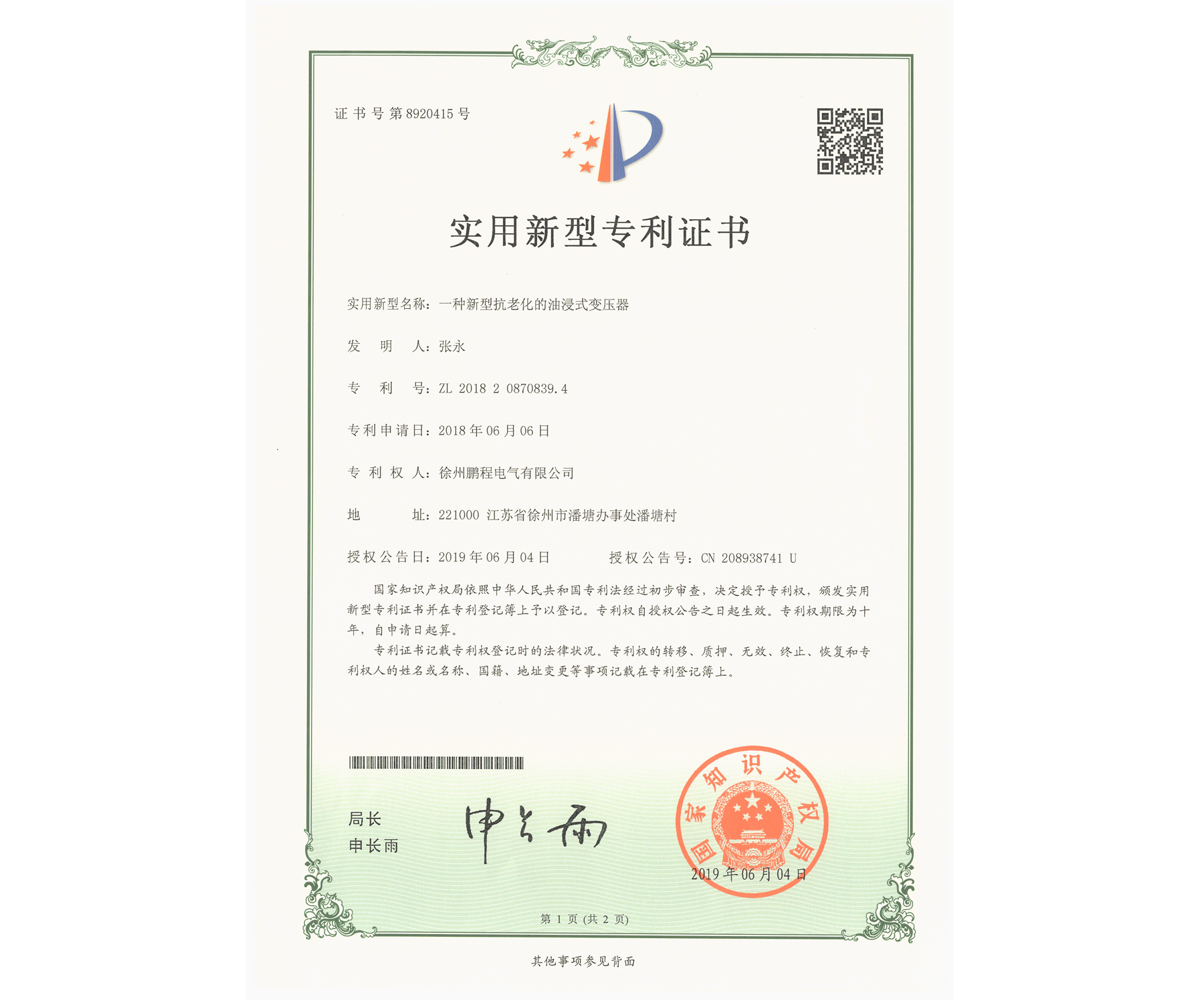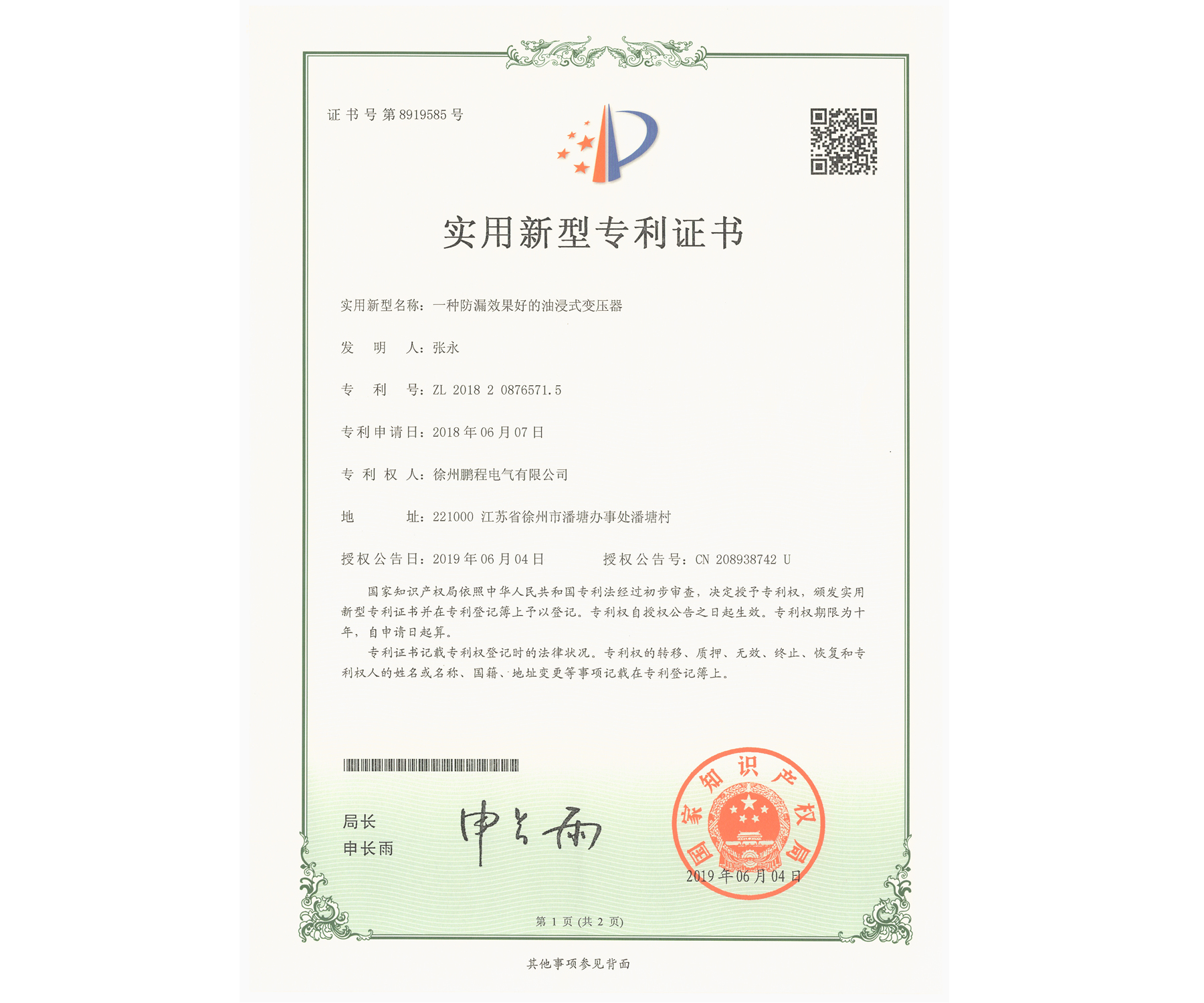 您的位置:首页 / 关于我们 / 资质荣誉 / 专利证书